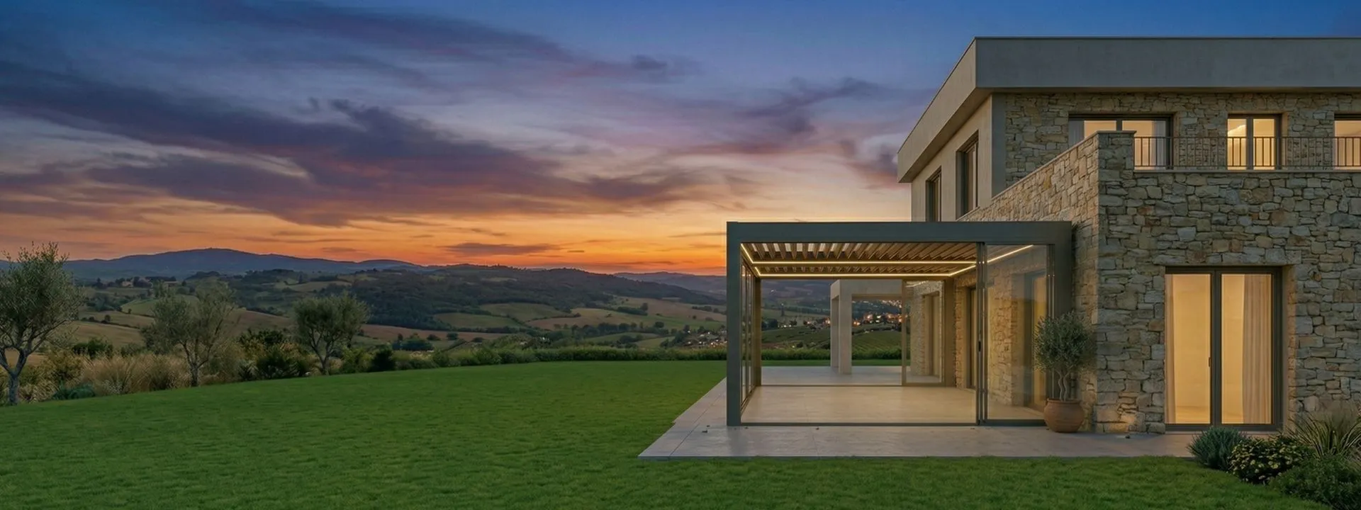 - Modern Pergola Sistemleri: Dayanıklı alüminyum gövde, paslanmaz bağlantı elemanları ve su geçirmez Black-Out kumaş teknolojisi.
